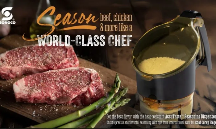 The heat-resistant AccuTaste seasoning dispenser ensures precise seasoning with a few clicks at your next barbecue or dinner party by using five-time international gold medal winner Chef Corey Siegel’s menu guide for getting the best flavor.