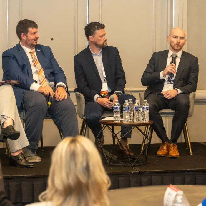 Sonoco VP of Global Sustainability Scott Byrne leads a panel discussion about how U.S. states validate on-pack recyclability claims.